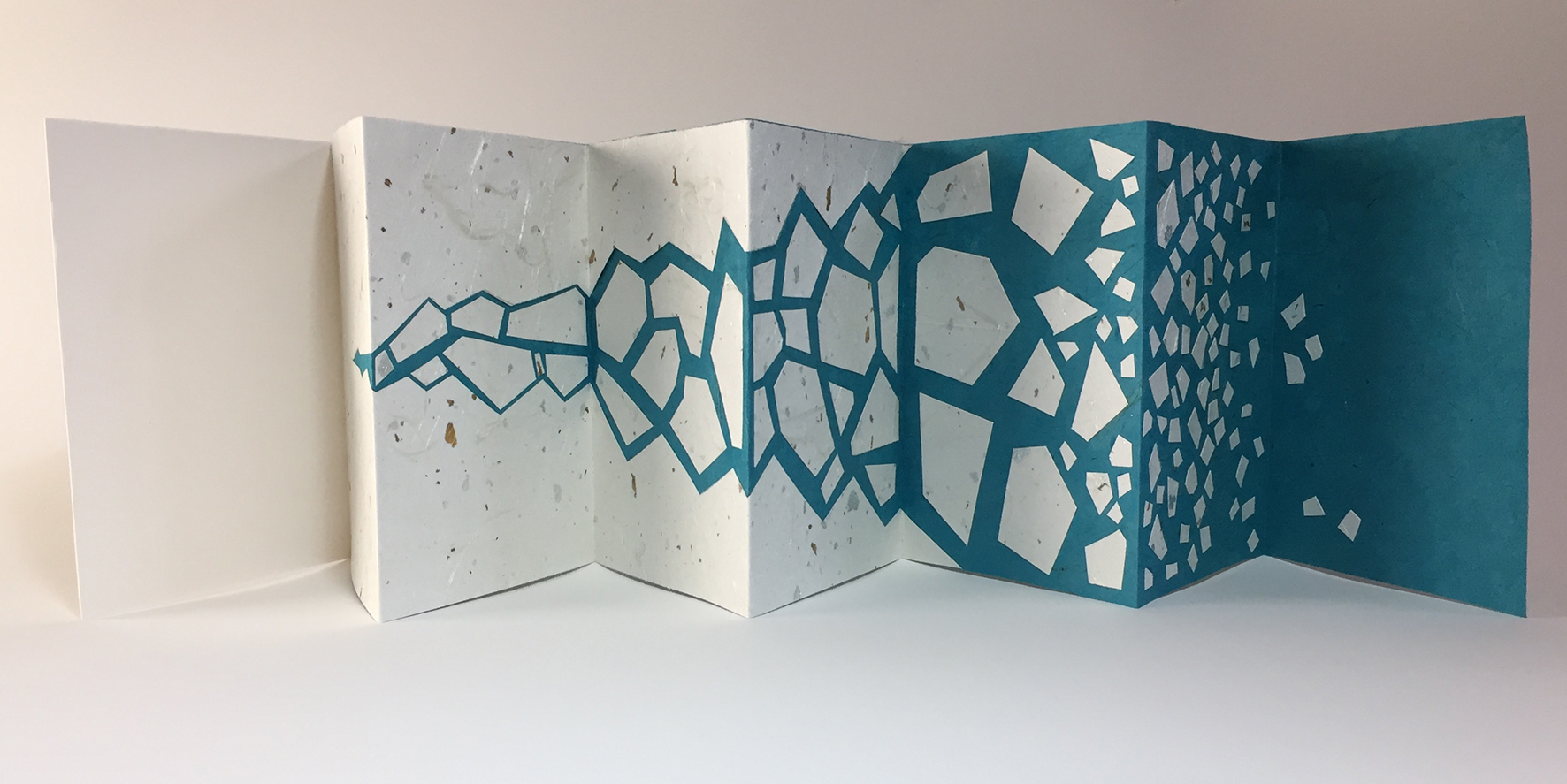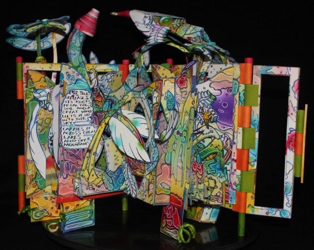 I am a scientist by education, a software engineer by profession, and a book artist in my creative life. I love to use books to bring these aspects together, particularly to share my love of science through my artist’s books. I enjoy playing with structure, so often my work is a book because I say it is! I have background in textile art, so I enjoy manipulating paper, and I also continue to make textile art and embroidery.