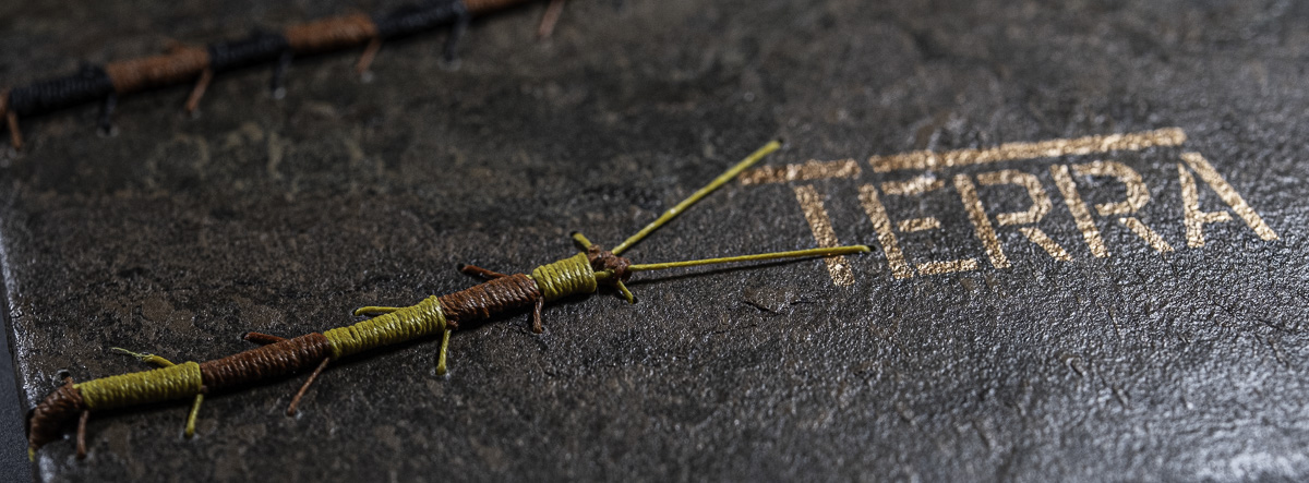 TERRA. Malcolm Raggett. Linen thread, stone verneer, acrylic ink, archival inkjet on paper. The journal of a fictional visit to the Isle of Skye.Mary Brodrick