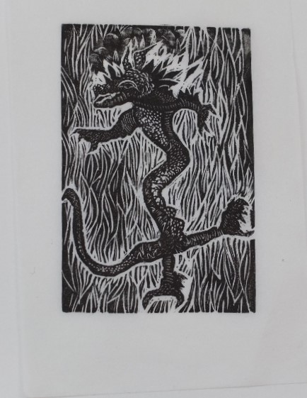 Mary has been fascinated by animals decorating porcelain, furniture, maps and textiles in the V & A Museum. These mythical creatures represent stories from around the world. She engraved several of them on boxwood for a book illustrating Jeanette Winterson’s words: Everyone who tells a story tells it differently, just to remind us that everybody sees (the world) differently. The V & A exhibited this book in their ‘Inspired By’ exhibition at the Morley Gallery.