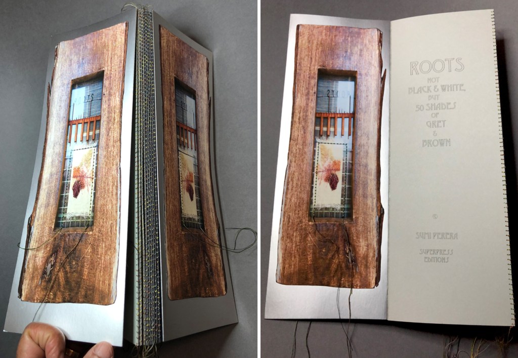 ROOTS - Not Black & White, but 50 Shades of Grey & Brown [Artist Book-opened]. Sumi Perera